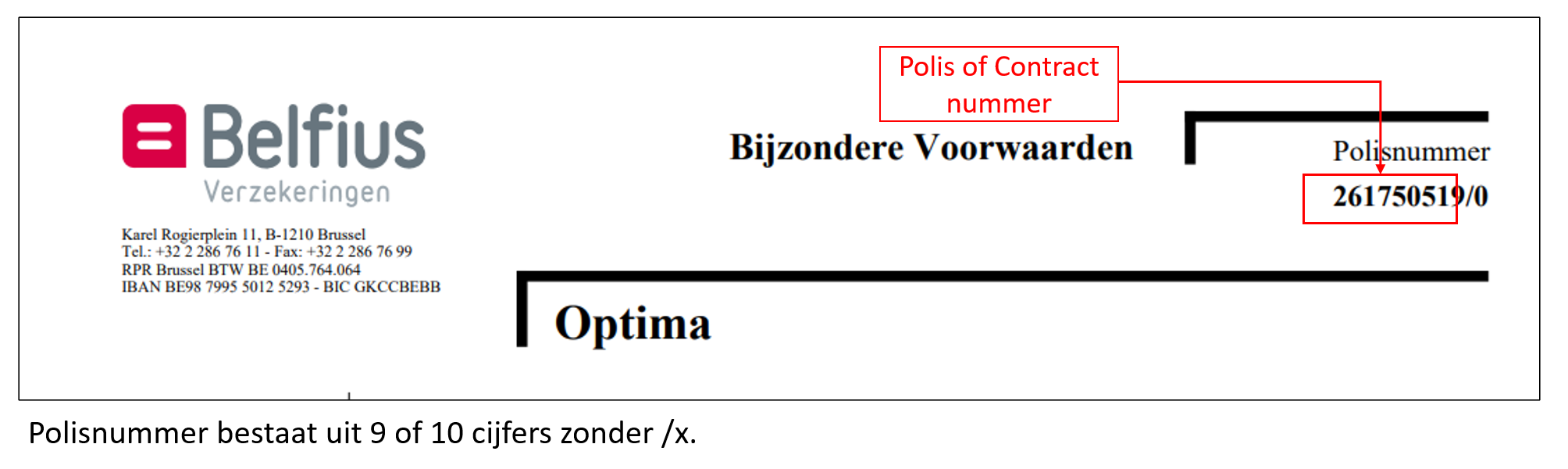 Waar vindt u het polisnummer terug op de bijzondere voorwaarden?