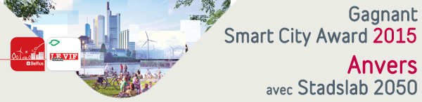 Le nom du vainqueur du Belfius Smart City Award 2015 a été divulgué lors de la soirée de gala du 2 décembre dernier. Madame Nabilla Ait Daoud, Échevine de la Ville d’Anvers a reçu le prix pour le projet StadsLab2050. Nous tenons à remercier pour leur collaboration enthousiaste tous les nominés et participants au concours ainsi que tous ceux qui étaient présents. Nous espérons vous accueillir à nouveau l’année prochaine pour la remise du Belfius Smart City Award 2016 !