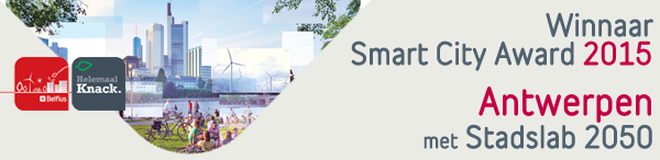 Tijdens de gala-avond op 2 december is de winnaar van de Belfius Smart City Award 2015 bekendgemaakt. Mevrouw Nabilla Ait Daoud, schepen van de Stad Antwerpen heeft de prijs in ontvangst genomen voor het project StadsLab2050. We willen alle genomineerden, deelnemers aan de wedstrijd en alle aanwezigen nogmaals bedanken voor hun enthousiaste medewerking. We hopen jullie in 2016 opnieuw te mogen verwelkomen voor de volgende Belfius Smart City Award uitreiking!