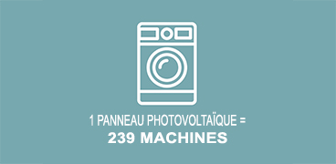 Avec 1 panneau solaire, vous pouvez faire tourner 239 machines, petites ou grosses. De quoi éliminer toutes les traces d’herbe sur les jeans de vos enfants ou cette tache de sauce sur votre nappe après un barbecue estival.