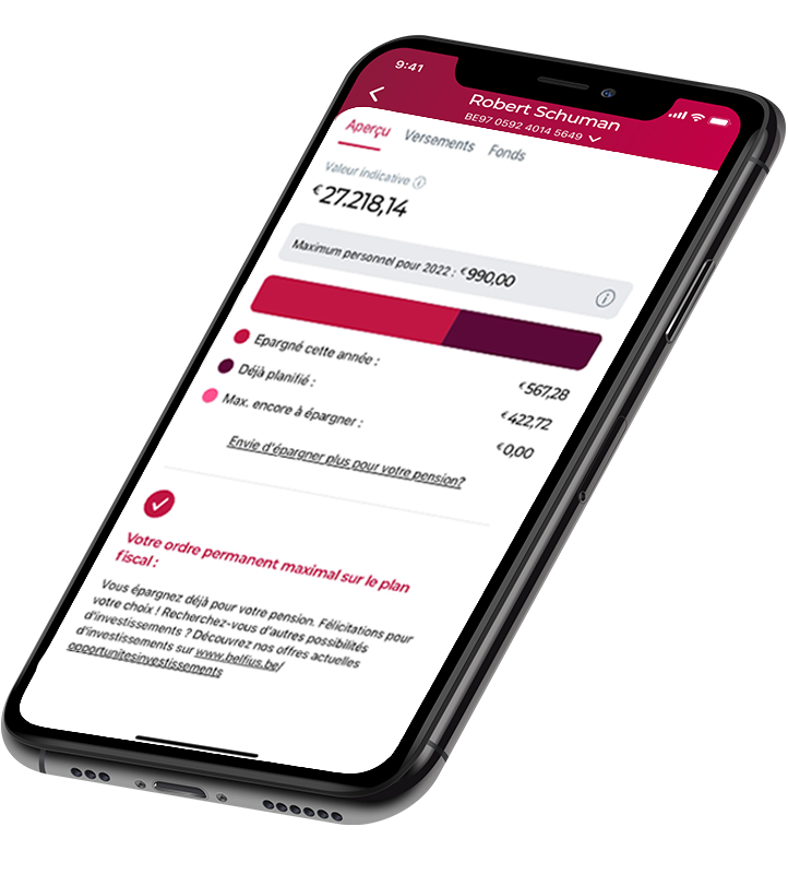 Via votre app Belfius ou Belfius Direct Net, vous pouvez suivre à tout moment l’évolution de votre fonds d’épargne-pension.