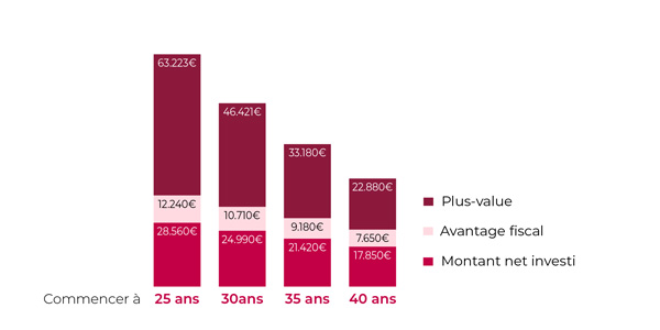 L’avantage fiscal a été calculé sur base d’une réduction d'impôts sur les versements de 30%.