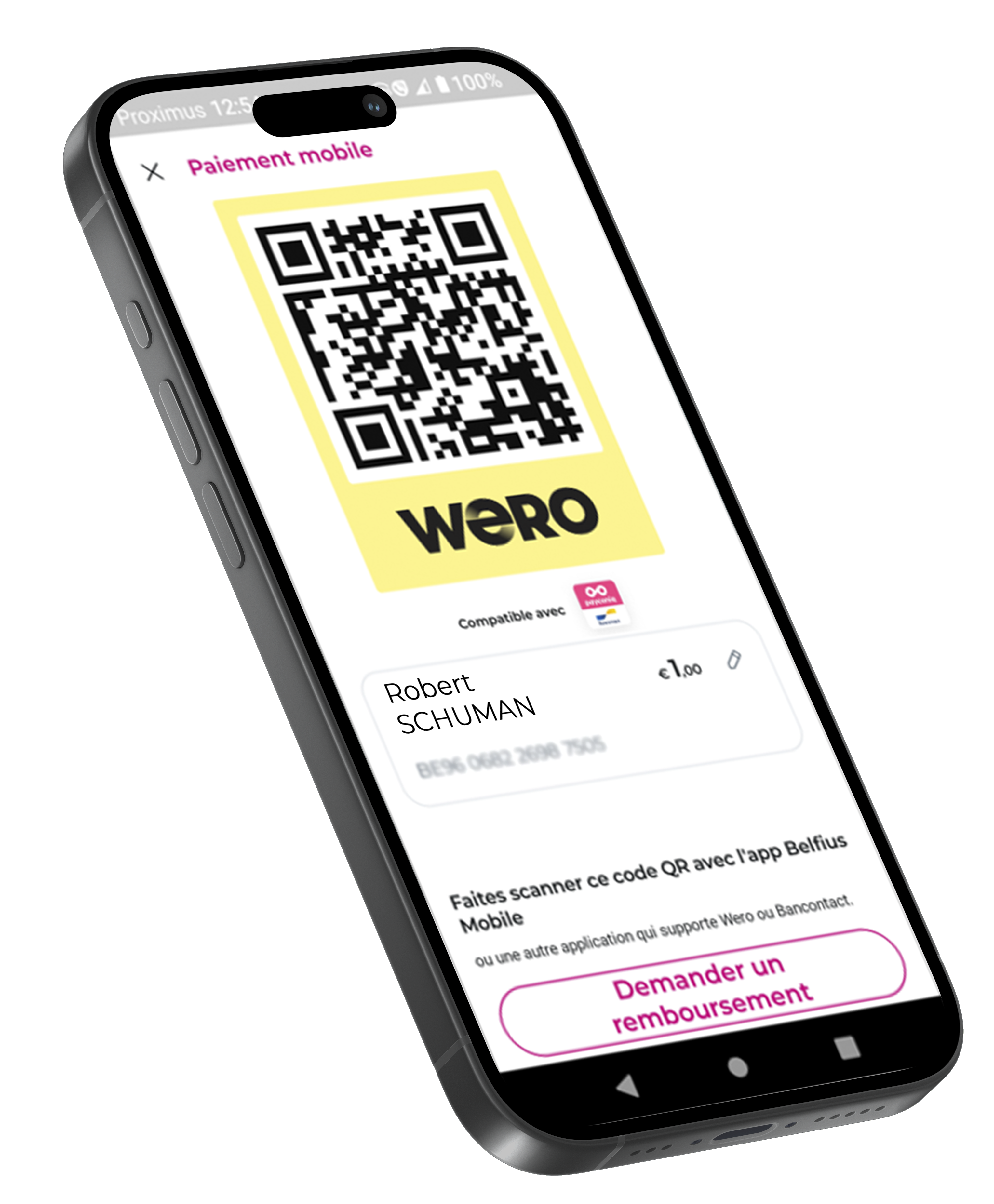 Compatible avec les apps d'autres banques (KBC, ING, BNP Paribas Fortis, Crelan, Argenta), Payconiq by Bancontact et Wero.