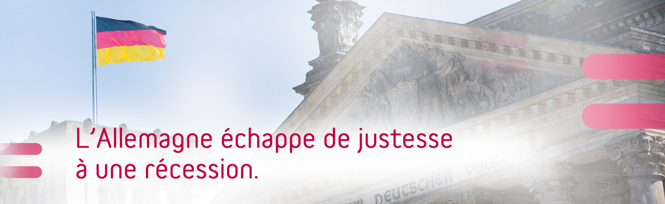 Contre toute attente, l’économie allemande est parvenue à éviter de justesse une récession au troisième trimestre. La définition courante d’une récession est un recul de l’économie pendant deux trimestres consécutifs. Après la croissance négative (-0,2%) au deuxième trimestre, la plus grande économie d’Europe semblait de nouveau s’acheminer vers un ralentissement au troisième trimestre, mais ce fléchissement s’est au contraire mué en croissance de 0,1%. Sur une base annuelle, l’économie allemande progresse de 0,5%. Les consommateurs dépensent davantage et les dépenses des pouvoirs publics allemands apportent une contribution positive, mais les entreprises investissent moins dans les machines.