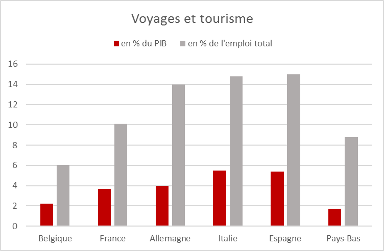 En tant qu’épicentre de l’explosion du virus en Europe, l’Italie est évidemment la plus durement touchée. Le lock-down, qui est d'application au moins jusque début avril, va entraîner une forte baisse du PIB au premier trimestre mais les ondes de choc se feront encore sentir durant le reste de l’année. La contribution directe du secteur du tourisme et des voyages à la croissance du PIB en Italie s'élève à 5,5 % et représente près de 15 % de l’emploi dans le pays. En Espagne, en France et même en Allemagne, le secteur est très important en termes d’output et d’emplois (voir graphique). Même si la propagation du virus se calme ces prochains mois, 2020 sera une année en grande partie perdue pour le tourisme. Vu le risque de résurgence et de diffusion ultérieure du coronavirus dans d'autres parties du monde (comme les USA et le Canada), les transports liés au tourisme ne vont sans doute reprendre qu’au compte-gouttes.