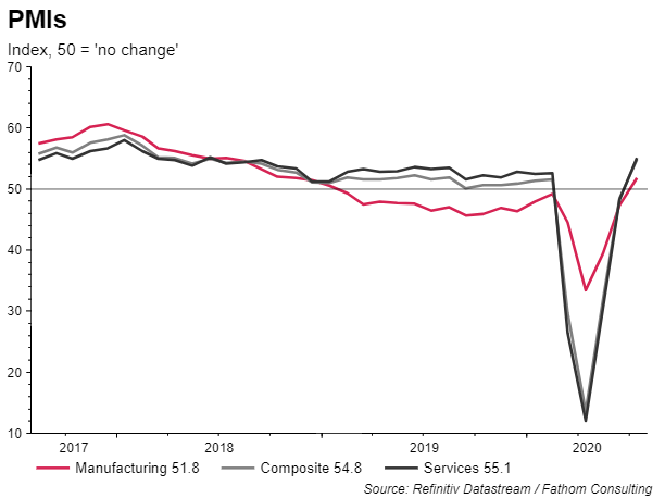Après des mois de faiblesse économique, cette bonne nouvelle est plus que bienvenue pour les entreprises européennes. Mais s’agit-il d’un rebond purement technique des indicateurs ou d’une solide reprise en forme de V? La production se redresse mais revient de niveaux très bas au printemps et les perspectives restent incertaines, vu la hausse récente des contaminations au Covid-19 dans certains pays. Divers indicateurs partiels des enquêtes auprès des entreprises montrent que les entreprises européennes continuent de tourner moins vite que la normale, en dépit de l’amélioration de juillet. L’indice de l’emploi a à peine progressé à un niveau de 42,9 en juillet, car les entreprises ne cessent de réduire leur capacité de production. La crise a contraint de nombreux secteurs touchés à procéder à des réorganisations et à des licenciements forcés. Le risque est grand que ce processus pèse encore un moment sur la demande de main-d'œuvre.
