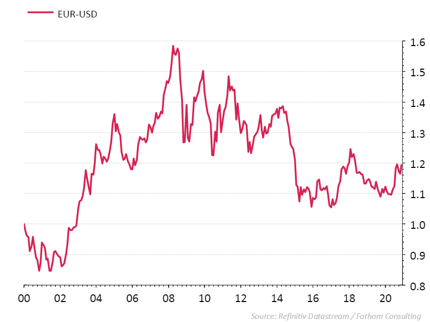 La vision négative de la devise américaine semble contredire les nouvelles positives venues ces derniers temps des États-Unis. Wall Street fait la fête après l’impressionnant rallye des indices boursiers. La troisième vague de Covid-19 fait toujours rage dans certaines régions d’Amérique, mais les perspectives se sont améliorées à présent que Pfizer et d’autres producteurs ont entamé la production de vaccins. Cette évolution suscite l’optimisme quant au redressement économique aux États-Unis. La probabilité que les autorités déploient un plan de relance semble augmenter, et l’on s’attend à ce que l’économie américaine parvienne à récupérer bien plus rapidement que la zone euro des dommages causés au PIB par la pandémie.