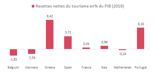 Il y a aussi des gagnants potentiels d’un scénario ‘staycation’. La Belgique et l’Allemagne, notamment, pourraient en profiter, parce que la perte potentielle des dépenses des touristes étrangers peut être compensée par des dépenses supplémentaires des habitants qui, normalement, visiteraient d’autres pays. En temps normal, les touristes belges dépensent plus d’argent à l’étranger que les touristes étrangers en Belgique (voir graphique 1). Si, cette année, davantage de Belges optent pour des vacances à la côte ou pour une des autres attractions de notre pays, cela pourra être un coup de pouce bienvenu au secteur touristique.