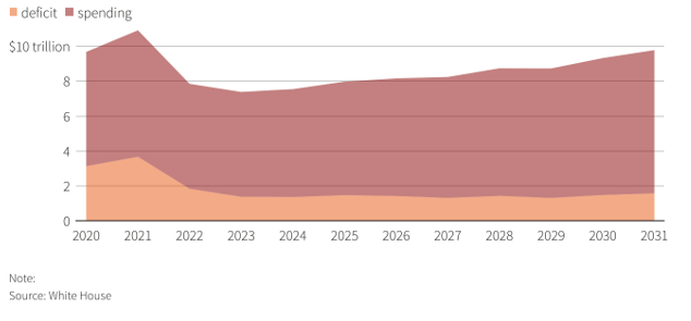 Graphique: Évolution des dépenses publiques et du déficit budgétaire (en billions de dollars)