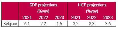 Pour l’ensemble de 2022, Belfius Research table sur une inflation moyenne de 8,3% par rapport à l’an dernier. Dans notre scénario de base, l’inflation se maintiendra à peu près au même niveau jusque juillet, après quoi elle faiblira lentement, mais restera très élevée. En décembre, nous prévoyons toujours une inflation de presque 6%. L'année prochaine, nous voyons l'inflation revenir à un niveau moyen de 3,6%, principalement parce que les prix de l'énergie augmenteront beaucoup moins. Cependant, l'inflation sous-jacente (c'est-à-dire hors prix de l'énergie et de l'alimentation) reste élevée. Notre pronostic pour l’inflation s’entoure d’une grande incertitude, et le risque est clairement orienté à la hausse. Une rupture (temporaire) de livraison de gaz russe, par exemple, pourrait encore accentuer la hausse du prix du gaz. Par ailleurs, l’embargo que l’Union européenne mettra en place d'ici la fin de l'année sur le pétrole de Russie fera grimper le prix de l’or noir encore plus que prévu dans notre scénario de base.