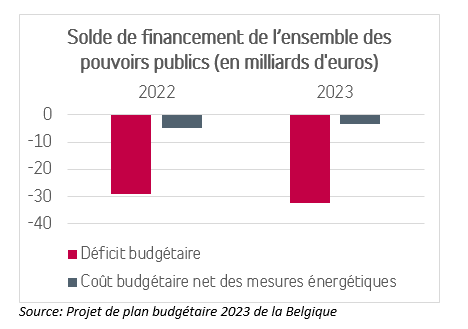 Lors du récent conclave budgétaire pour l’an prochain, les différents gouvernements de ce pays, le fédéral en tête, ont dès lors pris toutes sortes de mesures pour contrer la crise de l’énergie. Il ressort du projet de plan budgétaire pour 2023, que la Belgique a introduit ce week-end auprès de la Commission européenne, qu’il s’agit de dépenses supplémentaires nettes (déduction faite de nouvelles recettes comme la taxe sur les surprofits) de