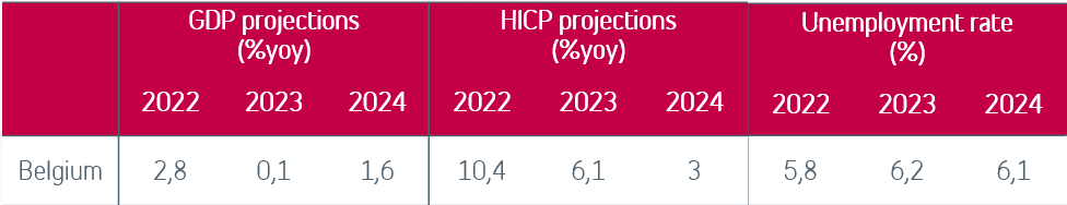 De même, la forte hausse des coûts énergétiques et des charges salariales pour les entreprises va entraîner un ralentissement de l’activité économique. La rentabilité est sous pression, de telle sorte que de nombreuses entreprises sont contraintes de réduire leur production. La Belgique dispose d'importantes industries énergivores, par exemple le secteur chimique et la métallurgie. De plus, la demande de produits diminue en raison du ralentissement de la croissance mondiale et la compétitivité des entreprises belges sur la scène internationale se détériore. Tous ces facteurs vont peser lourd sur les investissements des entreprises en 2023.