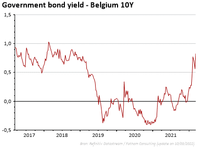 La décision est tombée hier comme une surprise pour les marchés financiers et a entraîné une augmentation des taux à long terme (voir graphique pour la dette décennale belge). En effet, on s'attendait à ce que la BCE reste encore quelque temps dans l'attentisme. La politique monétaire se trouve particulièrement en mauvaise posture, la guerre en Ukraine entraînant tant une augmentation de l’inflation qu'un affaiblissement de la croissance dans la zone euro. La Banque centrale doit juguler l’inflation afin de garantir la stabilité des prix, mais un resserrement de la politique monétaire a également un impact négatif sur la croissance. La prudence est donc de mise. Car, si le conflit avec la Russie s’envenime et s’éternise, le scénario redouté de la stagflation va se pointer à l’horizon.