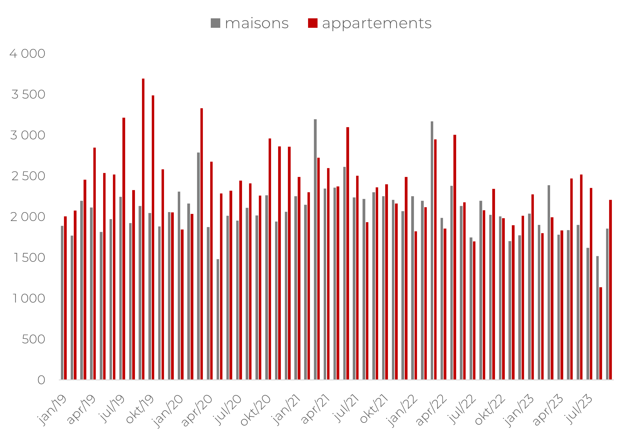 Au cours des neuf premiers mois de 2023, le marché résidentiel a compté 18,3 pour cent de transactions immobilières de moins que durant la même période de 2022.