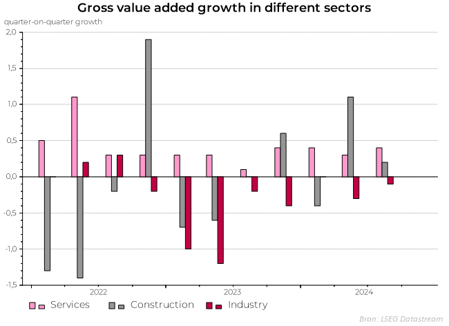 L'économie belge poursuivra sa croissance à un rythme constant. La consommation des ménages et les investissements publics solides restent les moteurs de notre économie. Les investissements des ménages dans les logements continuent à reculer et, dans un contexte de diminution des exportations, les investissements des entreprises fléchissent également. Durant l’été, nous avons enregistré une croissance de 0,3% (en glissement trimestriel) et, pour le dernier trimestre de 2024, nous nous attendons au même chiffre.
