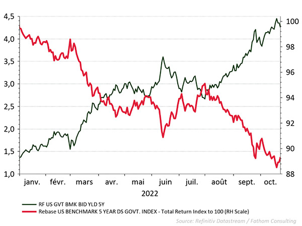 Graphique 2: Évolution des taux et de la performance du bon d’État américain à 5 ans