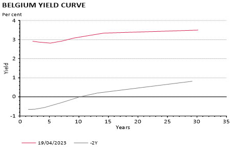 L’inflation élevée a conduit les banques centrales à mener des politiques monétaires restrictives. Ainsi, dans la zone euro, la Banque Centrale Européenne (BCE) a sensiblement augmenté ses taux directeurs. Le taux de dépôt est passé de -0,5% en juillet 2022 à 3% aujourd’hui. Cette situation s’observe également sur les taux à long terme. Les obligations d’état belge offrent pour les différentes maturités des rendements proches de 3% alors que ceux-ci étaient encore nuls, voire négatifs, il y a deux ans (graphique 1).