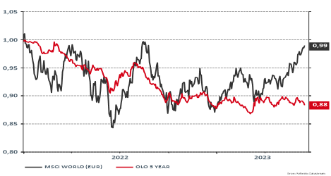 Graphique 1 : performance de l’OLO à 5 ans versus MSCI World depuis début 2022