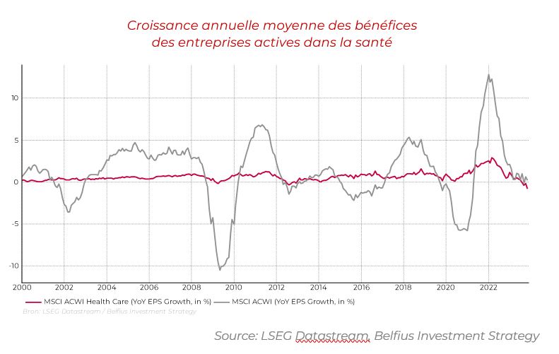 Pour mémoire, le marché s’attend à un atterrissage en douceur de l’économie. C’est en tout cas l’objectif affiché par les banques centrales. Or, non seulement le secteur de la santé peut se prévaloir d’ une croissance des bénéfices historiquement élevée, il peut aussi et surtout compter sur la stabilité de cette évolution.