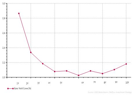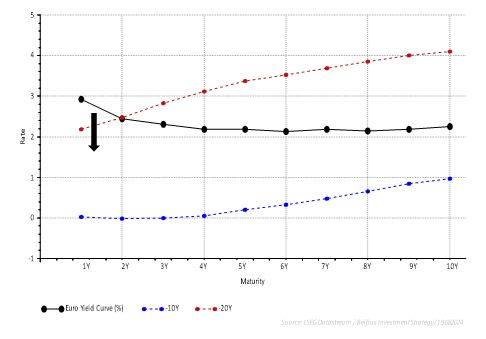 Si cela se confirme, nous devrions assister à une baisse des taux court terme et a un aplatissement de la courbe des taux, suivi éventuellement d’une pentification pour retrouver une courbe dite « normale ».