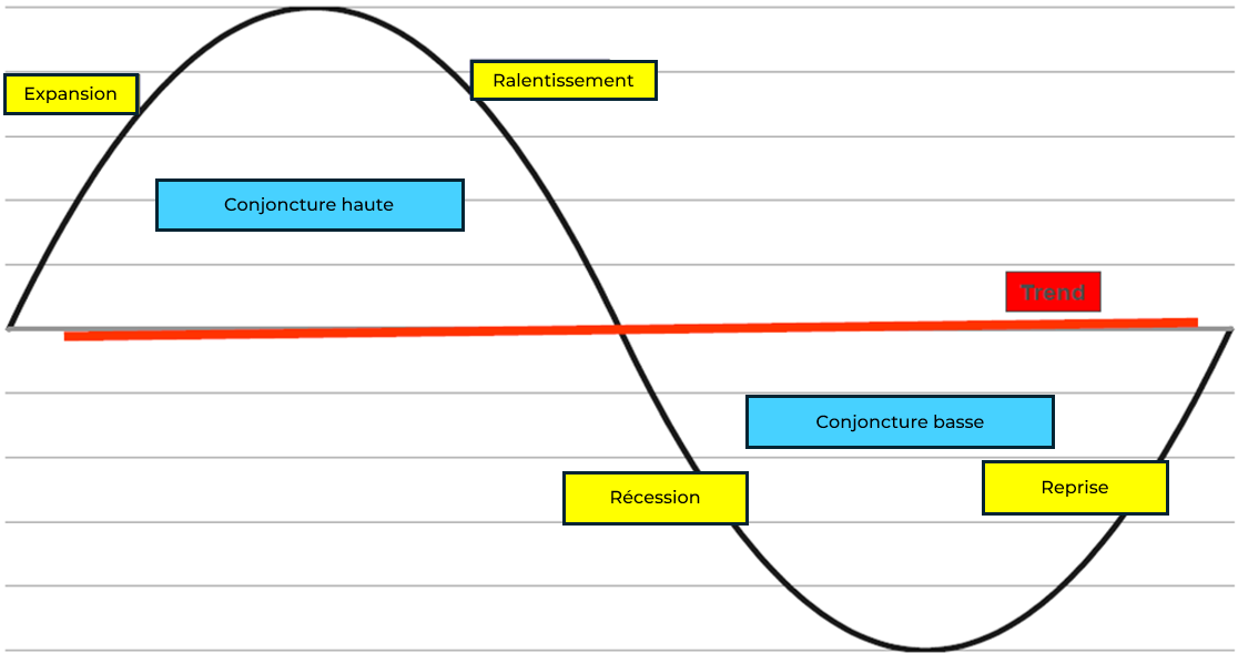 Le cycle économique passe par quatre phases: l'expansion (l'économie croît jusqu'à un sommet), le pic, la récession (l'économie se contracte) et la reprise. Selon la phase de l'économie, certains secteurs se porteront mieux que d'autres. Connaître la phase dans laquelle se trouve l'économie vous permet d'apporter une touche supplémentaire à votre portefeuille d'investissement. Dans le jargon technique, les gestionnaires de fonds parlent de surpondération ou de sous-pondération.