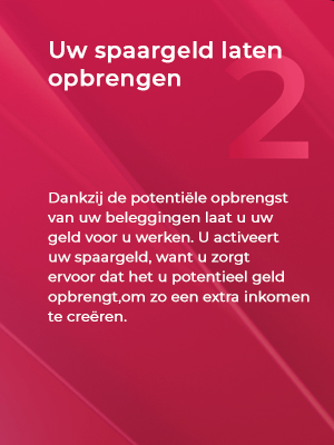 Als u uw spaargeld niet volledig nodig hebt op korte termijn, kan het interessant zijn om een deel ervan te beleggen om een potentieel beter rendement te behalen op lange termijn. Door de inflatie brengt het traditionele sparen vandaag zo goed als niets meer op. Anders gezegd: uw geld verliest aan waarde. Door te beleggen mag u hopen dat u een deel van uw kapitaal hiertegen beschermt. Maar vergeet zeker niet om voldoende spaargeld opzij te houden als reserve voor onverwachte gebeurtenissen.