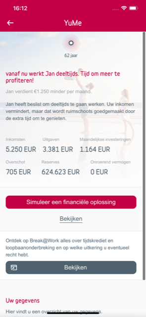 In deze editie Slechts 62% van uw loon bij uw pensioen… Hoe dat verschil opvangen? Welke spaarformules kan u kiezen? Met YuMe altijd het overzicht van uw persoonlijke situatie en oplossingen op maat! Maak uw dromen waar met YuMe als financiële planner YuMe en uw Belfius-adviseur: een heldere blik op nu en later