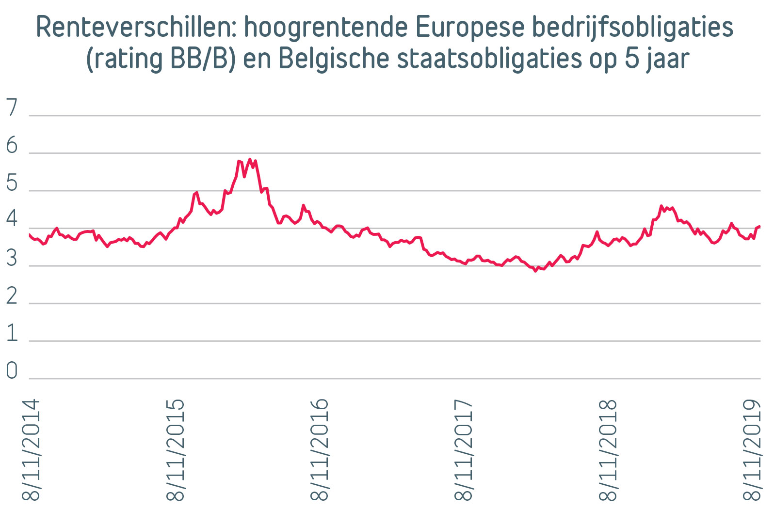Eigenlijk ontmoedigt de ECB risicoloze beleggingen en moedigt ze alternatieve beleggingen aan. In een context van slappe groei en goedkoopgeldbeleid vinden we het dus verstandig om Europese hoogrentende obligaties in portefeuille te houden als diversifiëring. Het risico moet u er wel bij nemen.