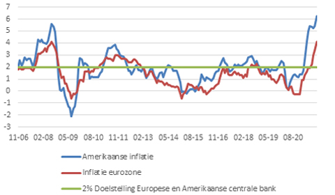 - De inflatie vandaag is vooral het gevolg van de dure energie. We vergelijken de huidige olieprijs met de uiterst lage prijzen van 2020. Niemand verwacht een gelijkaardige prijsopstoot in 2022.