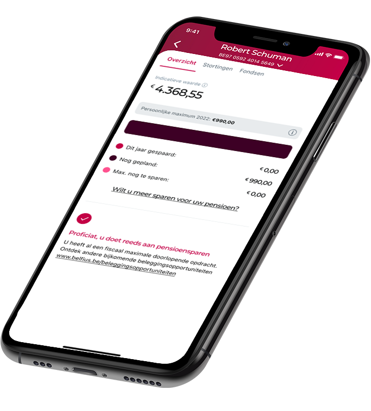 Via uw Belfius-app of Belfius Direct Net kan u op elk moment de evolutie van uw pensioenspaarfonds volgen.