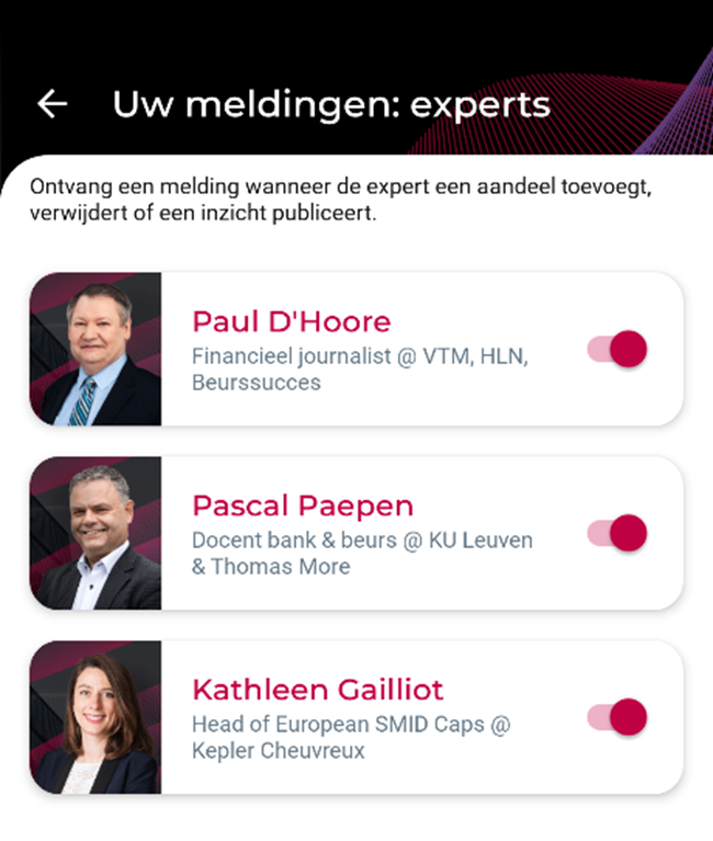 Wil u verwittigd worden bij elke nieuwe publicatie van een expert, dan kan u de meldingen activeren via uw Belfius Mobile app.