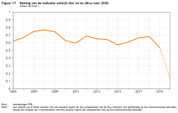 Maar er zijn nog andere kosten die over het algemeen minder aandacht krijgen, omdat ze moeilijker te meten zijn, en omdat er politiek minder belang aan gehecht wordt aangezien alle aandacht naar de gezondheidscrisis gaat. Het Planbureau publiceerde vorige week een actualisering van haar zogenaamde "aanvullende indicatoren op het BBP", die de ontwikkeling van de samenleving en het welzijn van de bevolking proberen te vatten. De resultaten voor 2019 zijn zorgwekkend, maar voor 2020 is de eerste raming ronduit dramatisch. De pandemie heeft in 2020 een bijkomend desastreus effect op alle aspecten van het welzijn, zoals de gezondheid, levensstandaard, werkomstandigheden, opleiding en sociale relaties van de bevolking.