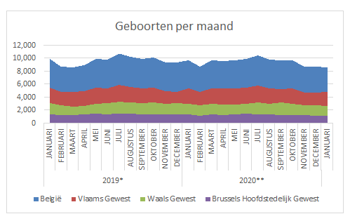 Bron: Statbel *: definitieve cijfers **: voorlopige cijfers