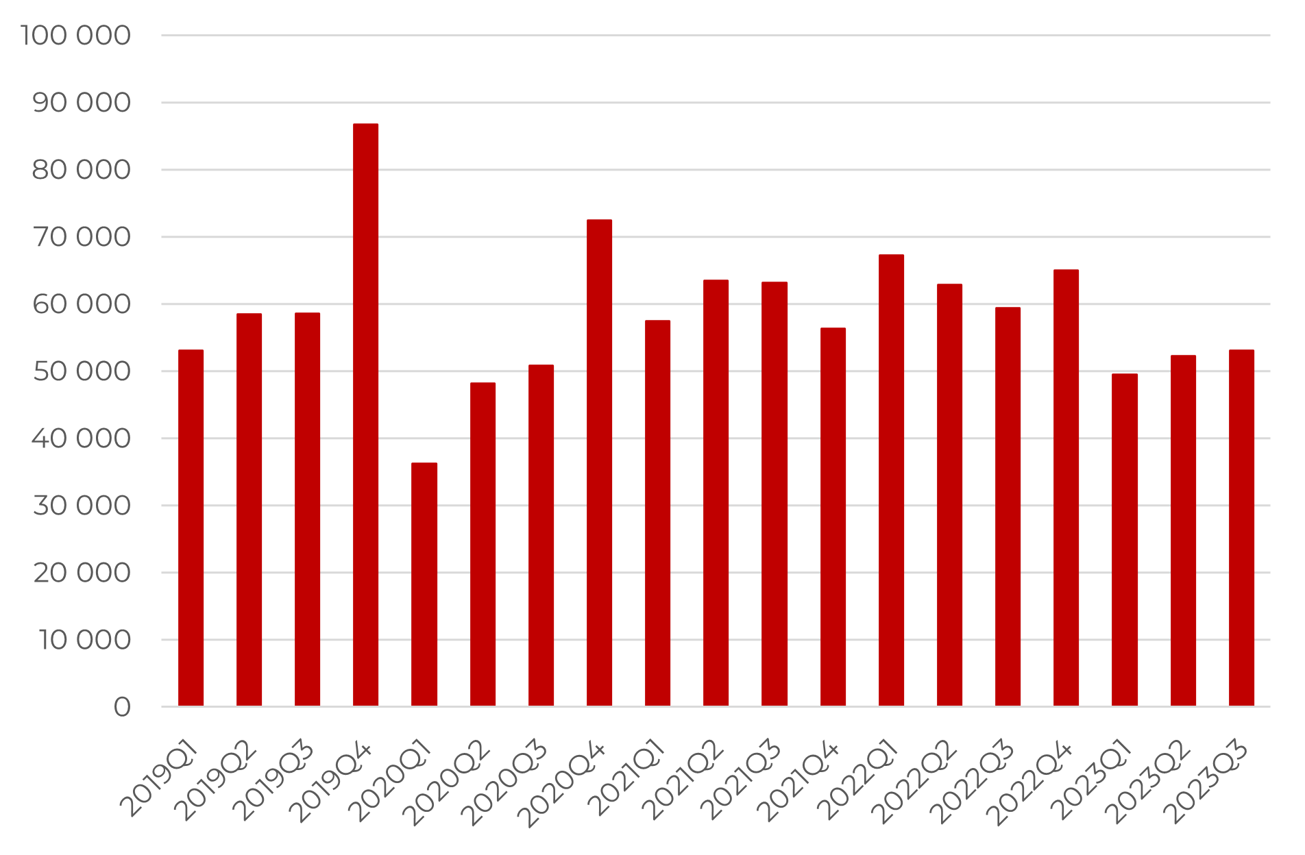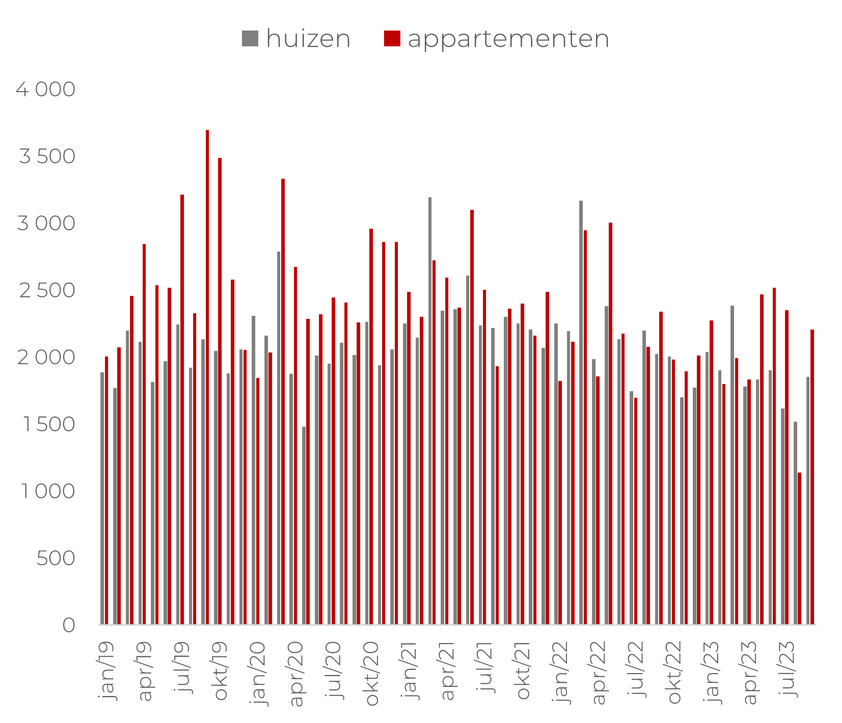 In de eerste negen maanden van vorig jaar werden 18,3 procent minder vastgoedtransacties geteld op de residentiële markt dan dezelfde periode in 2022.