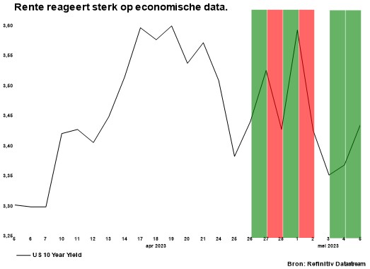 Op 3 en 4 mei (2 laatste groen gearceerde gebieden) steeg de rente omdat de werkloosheidsgraad lager uitkwam dan verwacht. Bovendien werden er in april meer jobs gecreëerd dan analisten anticipeerden.