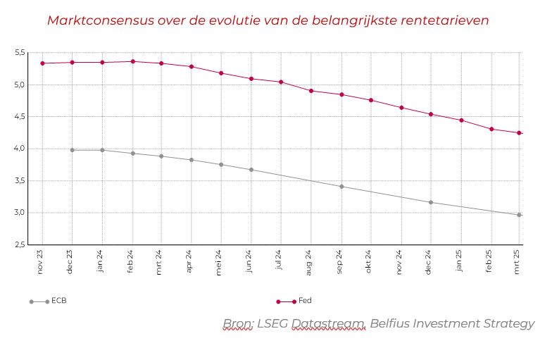 Op basis van deze verwachtingen daalden, vooruitlopend op de verlaging van de beleidsrentes, de lange rentes (die het marktsentiment beter weerspiegelen) in november, ook al probeerden de centrale banken het enthousiasme in hun toespraken te temperen.