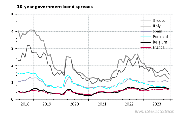 Landen in de eurozone hebben er dus alle belang bij om uit het vizier van de obligatiemarkt te blijven. Maakt de markt zich zorgen over de financiële draagkracht van een lidstaat, dan kunnen de rentes fors stijgen. Dit was bijvoorbeeld het geval in België in 2011. Het renteverschil schommelde tot midden 2011 rond 0,3%, maar bedroeg eind november 2011 al 1,75%. Oorzaak: de regeringsonderhandelingen die al meer dan een jaar aansleepten. Onder druk van de markten kwam er dan op 6 december 2011 toch een regering.