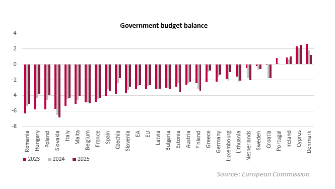 Als we de prognose bekijken van de Europese Commissie, stellen we vast dat de fiscale situatie in verschillende Europese landen ook de volgende jaren moeilijk blijft, met overheidsuitgaven die groter zijn dan inkomsten. De Europese Commissie gaat voor België uit van een overheidstekort dat ook in 2024 en 2025 rond 5% zal liggen en zelfs zal toenemen, terwijl de schuldgraad in België al relatief hoog is.