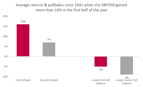Sterke rendementen zoals we in de eerste jaarhelft gezien hebben kunnen in 79% van de gevallen tot positieve rendementen in de tweede jaarhelft leiden.