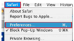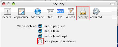 U klikt links bovenaan op "Safari", vervolgens op "Preferences" en vervolgens voor "Security". Schakel de optie "Block Pop-Up windows" uit.