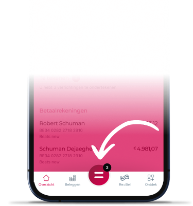 Gedaan met altijd dezelfde overschrijving in te vullen! Via het Belfius-gelijkheidsteken rechts onderaan in uw app maakt u eenvoudig een doorlopende betalingsopdracht aan. Handig!